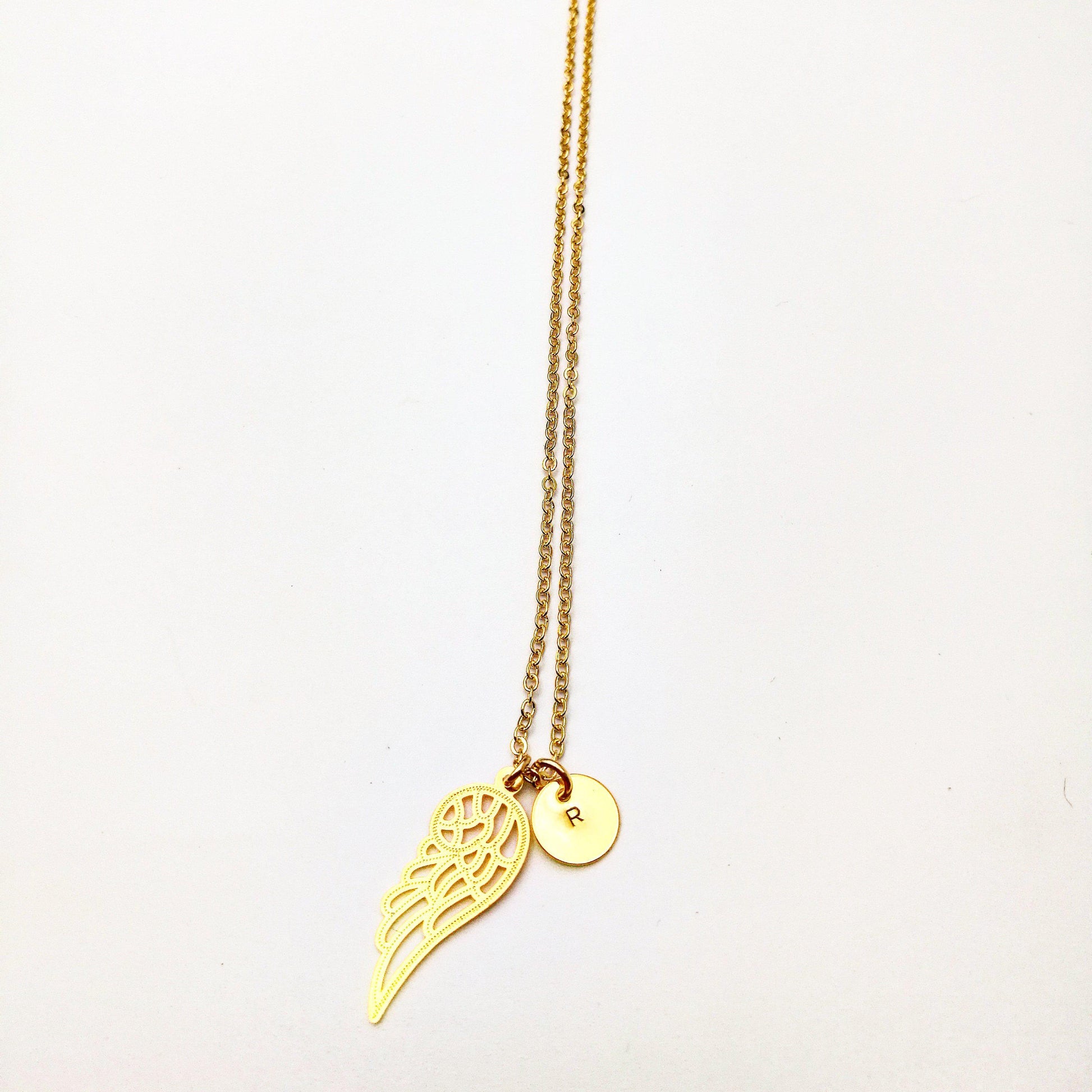 De vleugel, de initiaal hanger en de ketting zijn volledig gemaakt van 18K gold filled. We werken uitsluitend met dit materiaal om er verzekerd van te zijn dat onze sieraden niet verkleuren of vervagen.